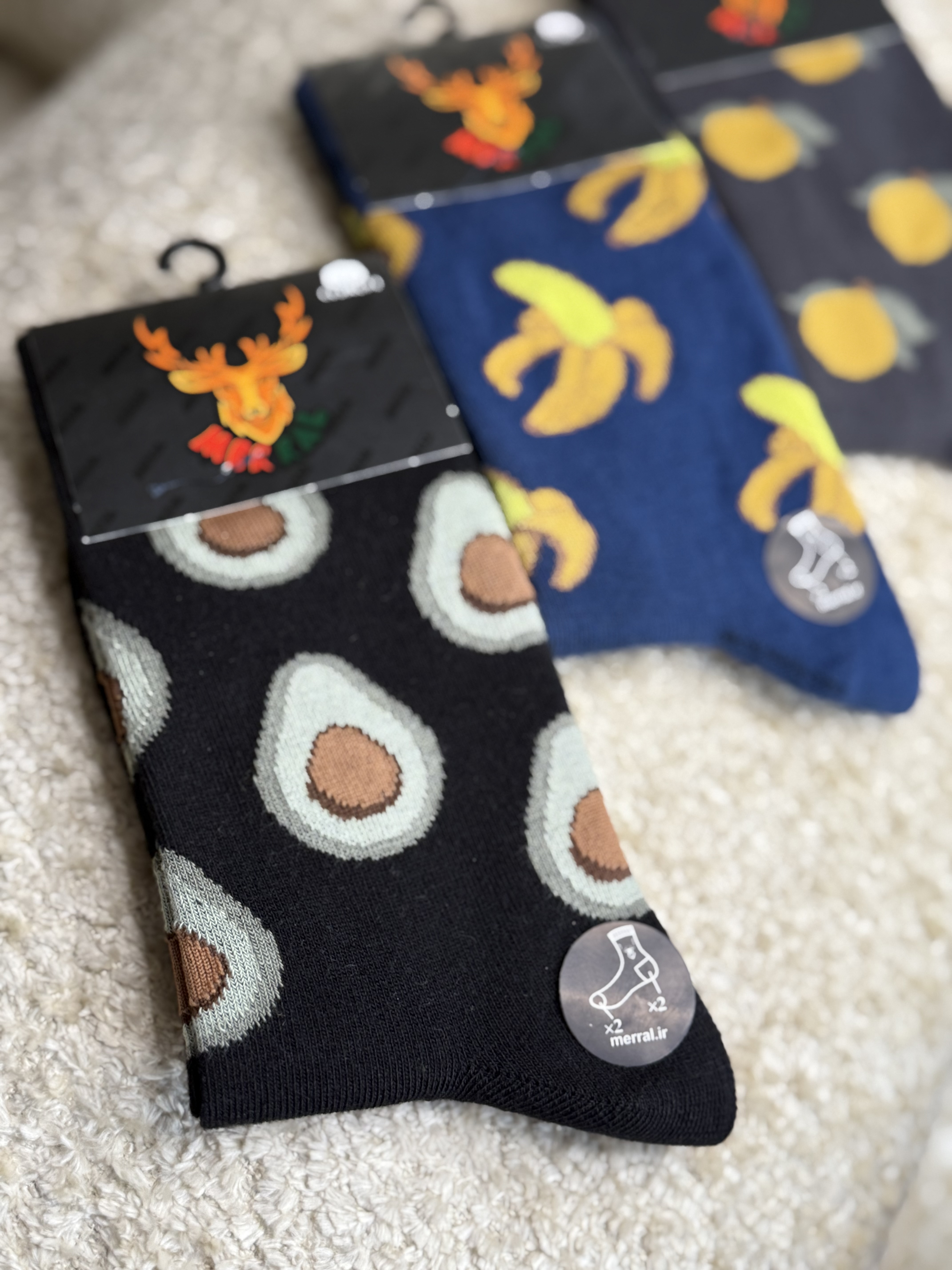 جوراب زنانه ساقدار طرح میوه ای موز لیمو آواکادو هپی مرال عمده