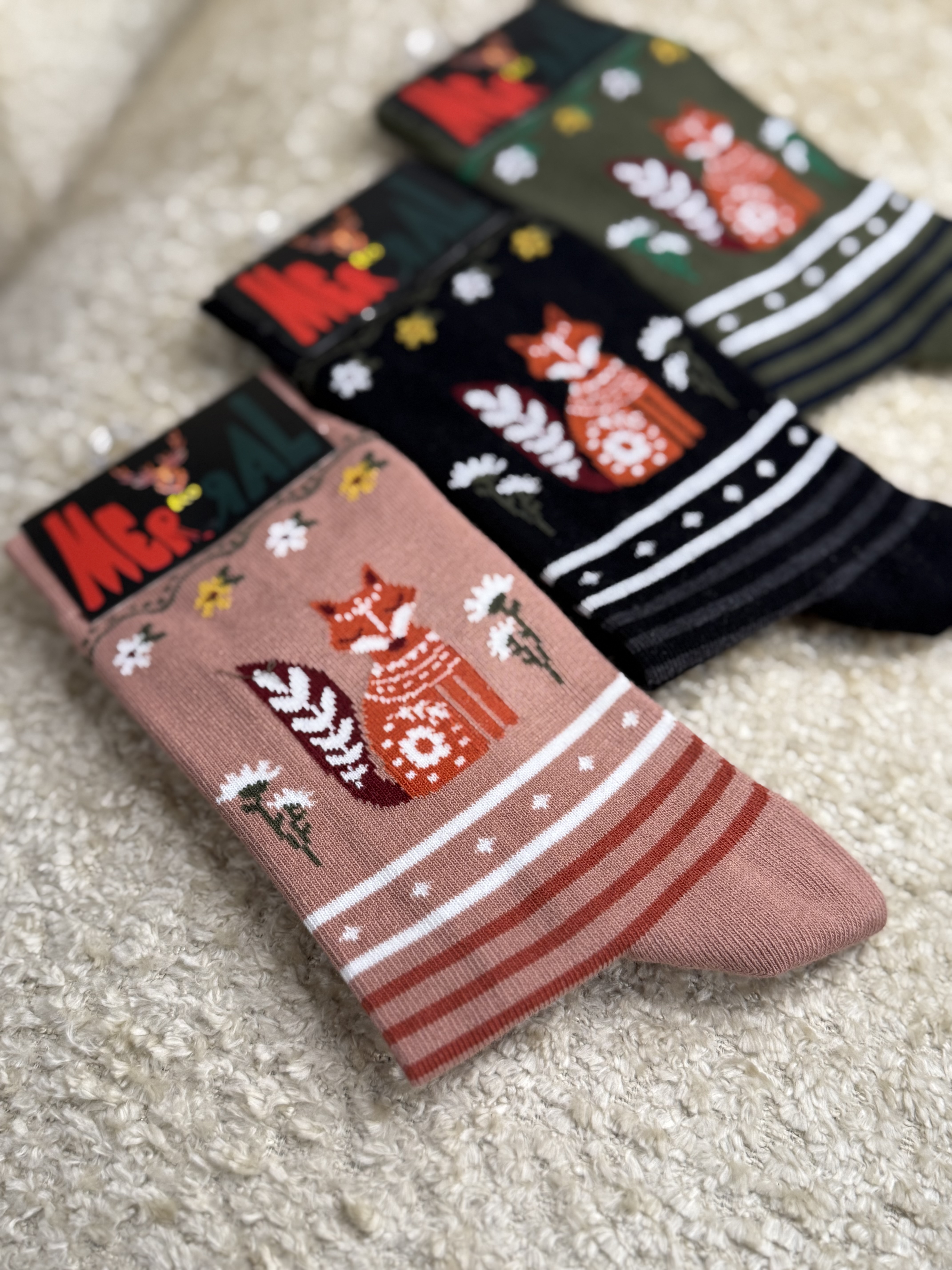 جوراب زنانه ساقدار طرح روباه گل دار هپی مرال عمده