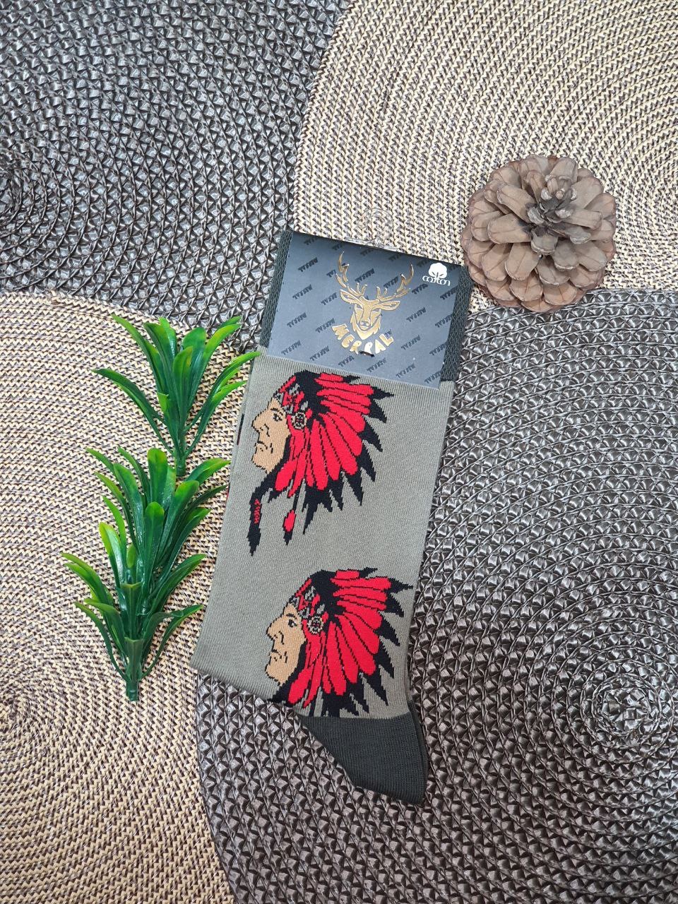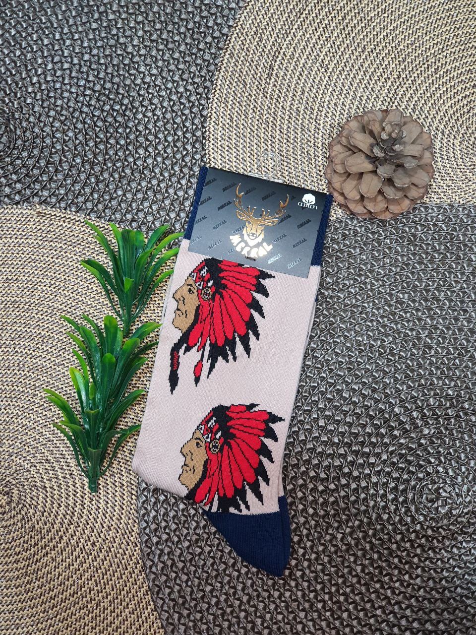 جوراب مردانه ساقدار طرح سرخ پوست هپی مرال عمده
