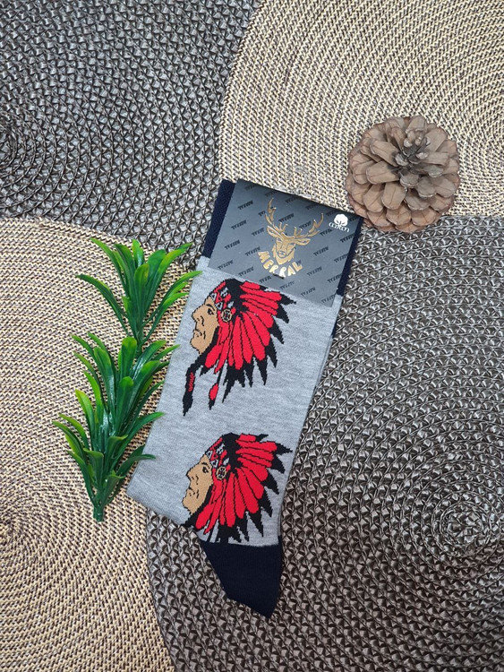 جوراب ساقدار مردانه طرح سرخ پوست هپی مرال