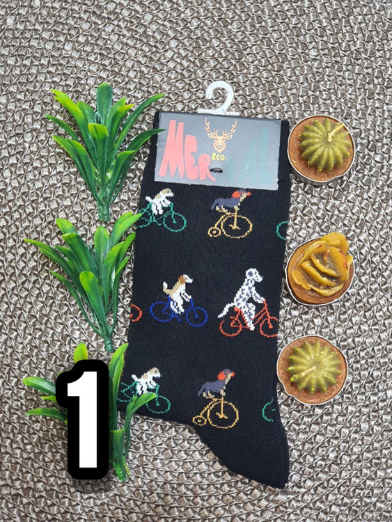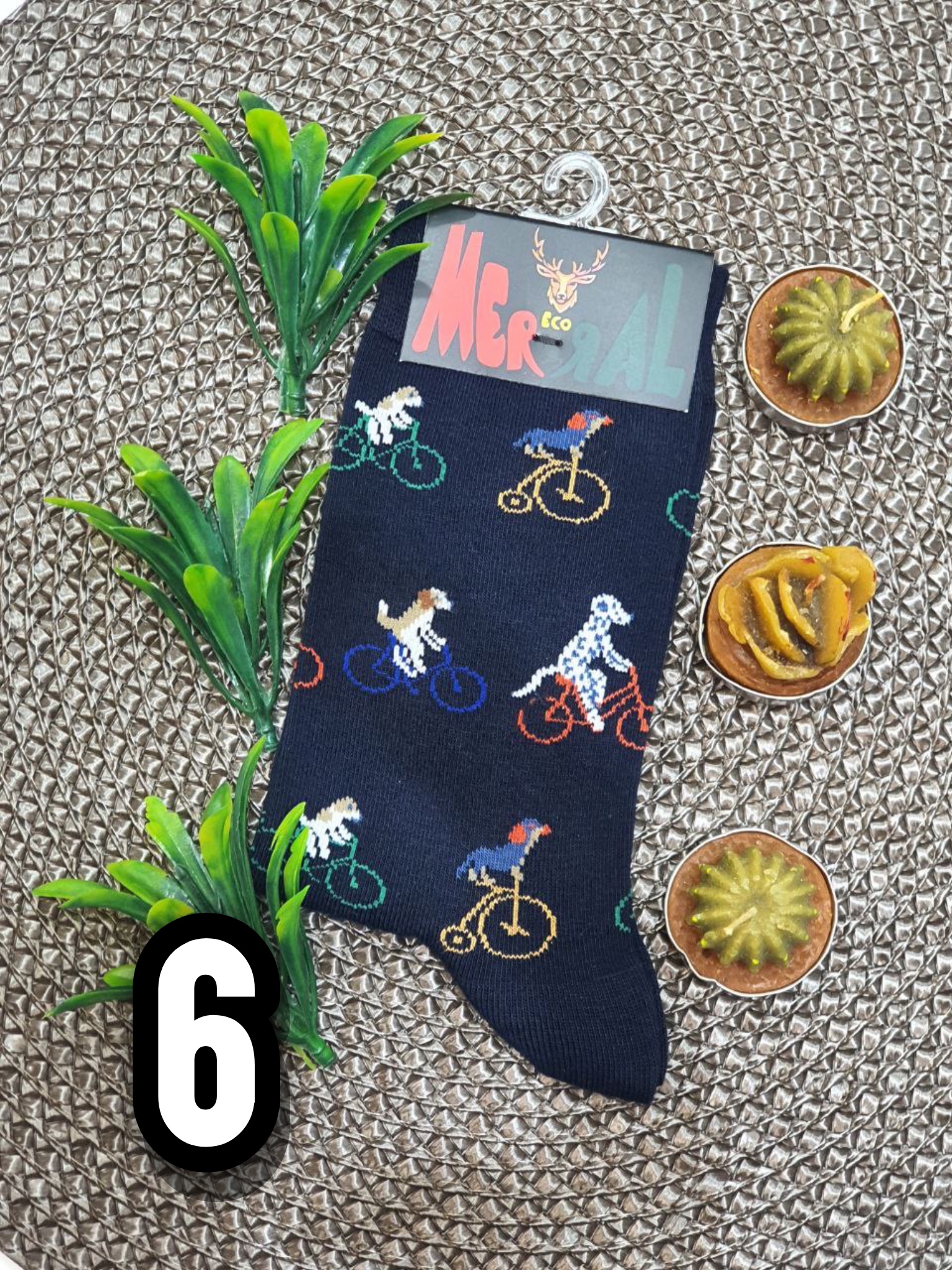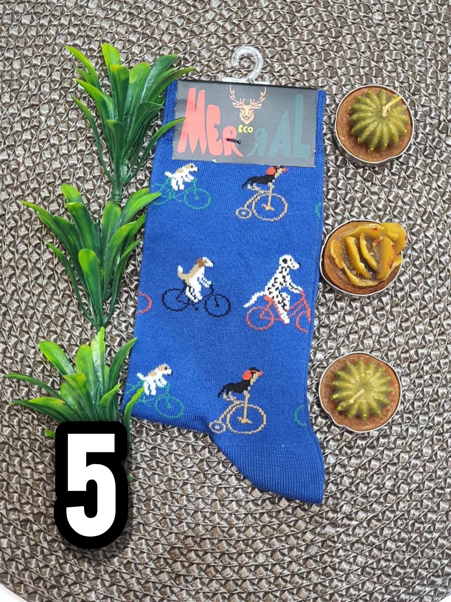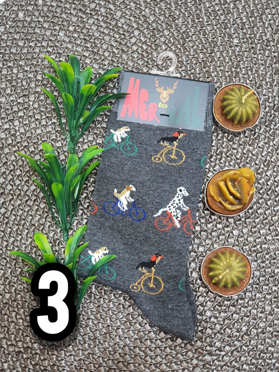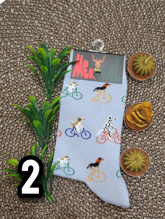 جوراب زنانه ساقدار طرح سگ و گربه دوچرخه سوار هپی مرال