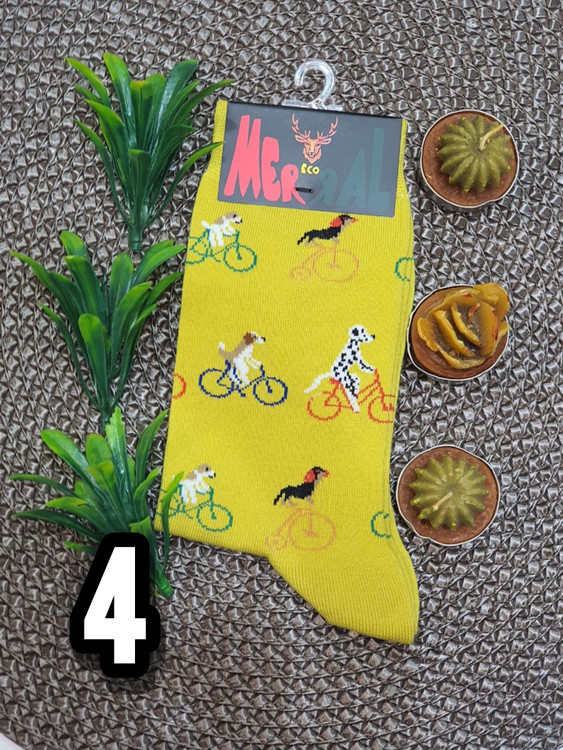 جوراب ساقدار زنانه طرح سگ و گربه دوچرخه سوار هپی مرال