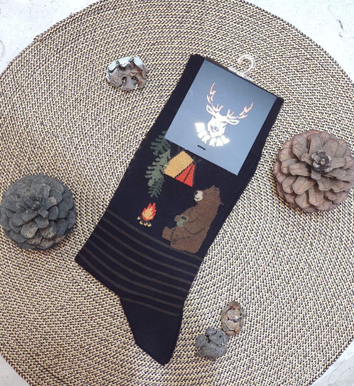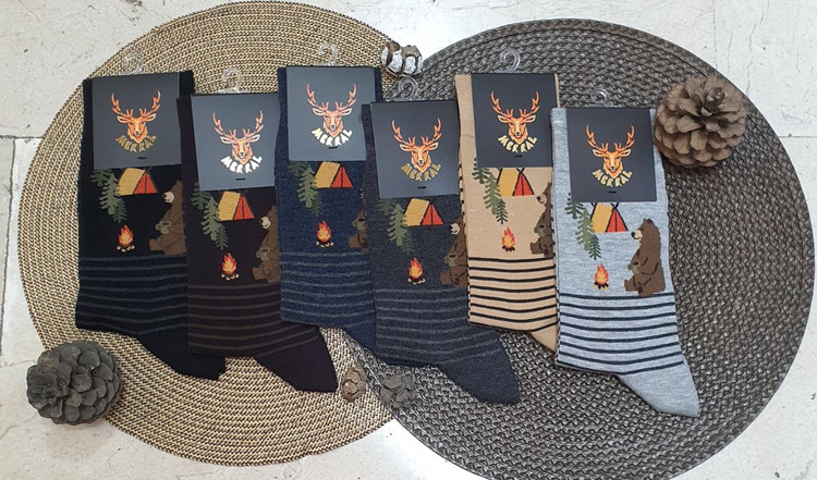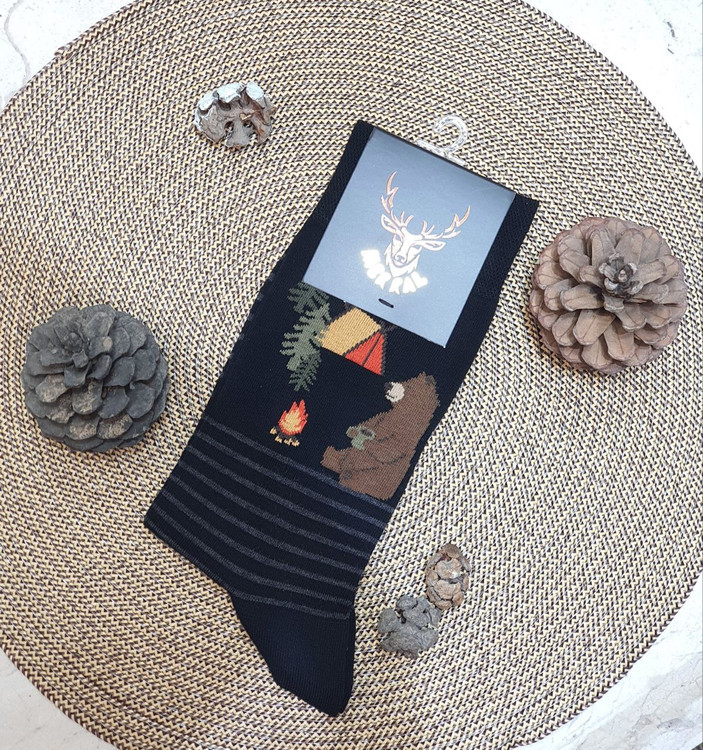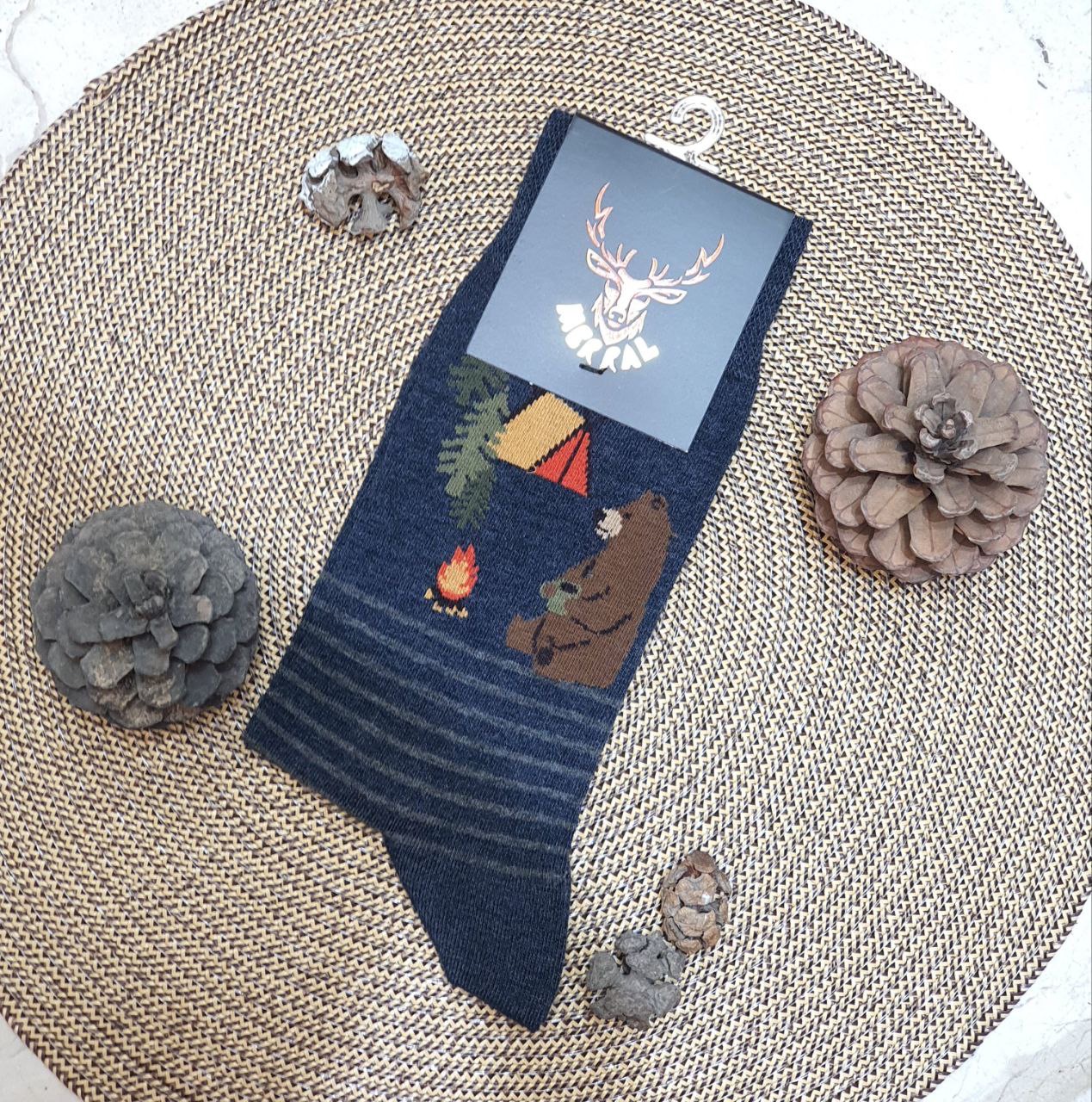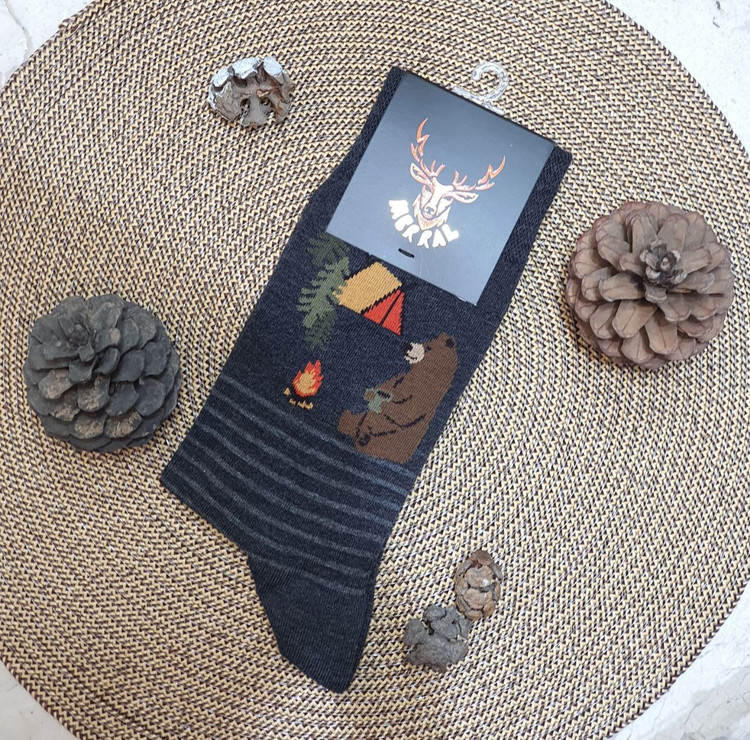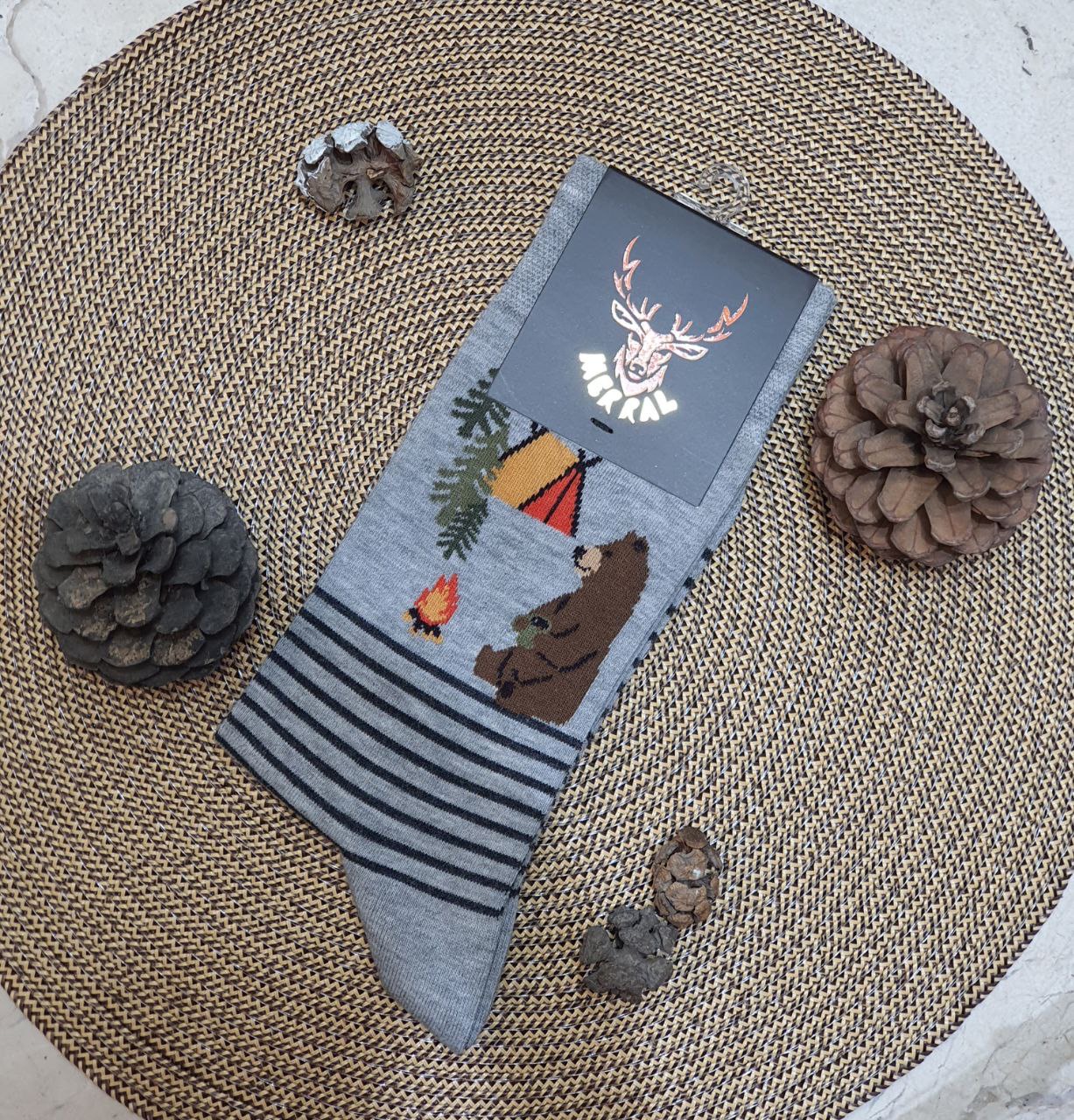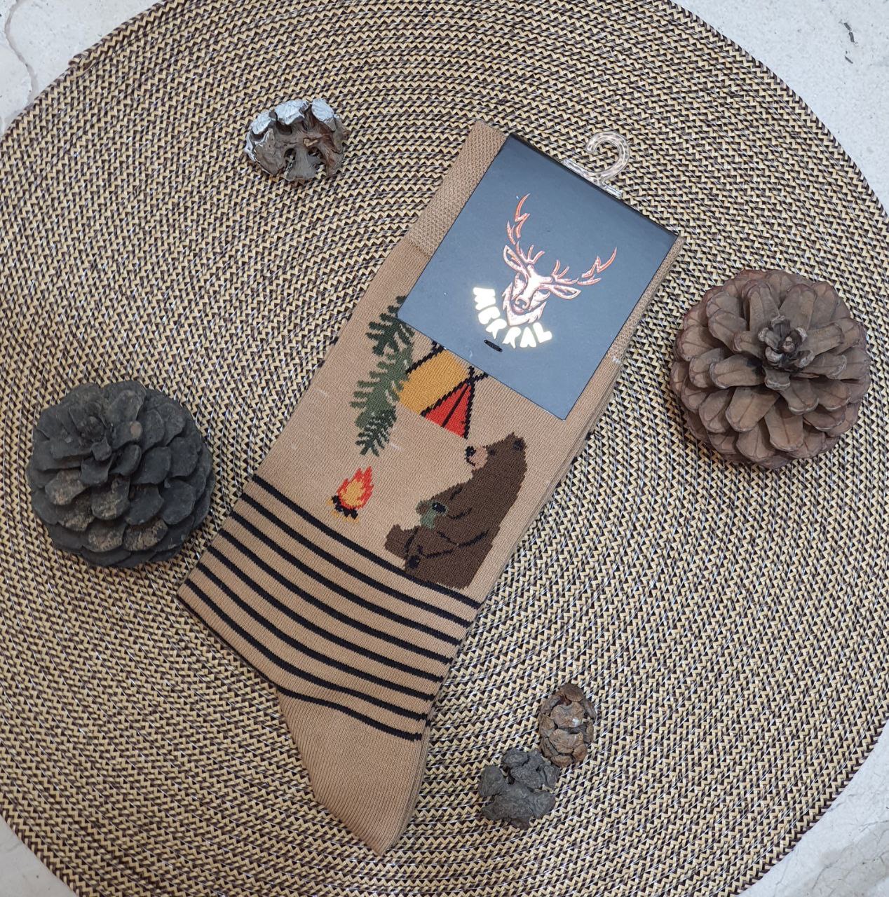 جوراب مردانه ساقدار خرس قهوه ای کمپ هپی مرال