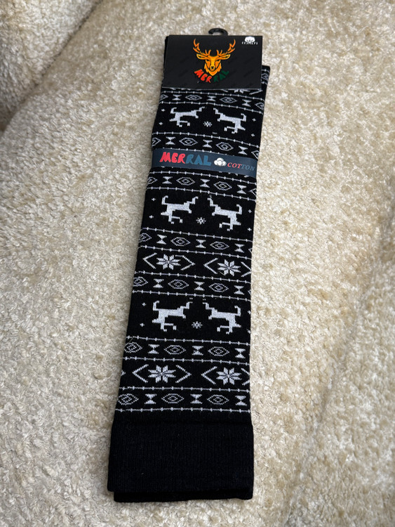 جوراب زنانه زیر زانو طرح زمستونی گوزن و دونه برف مرال عمده