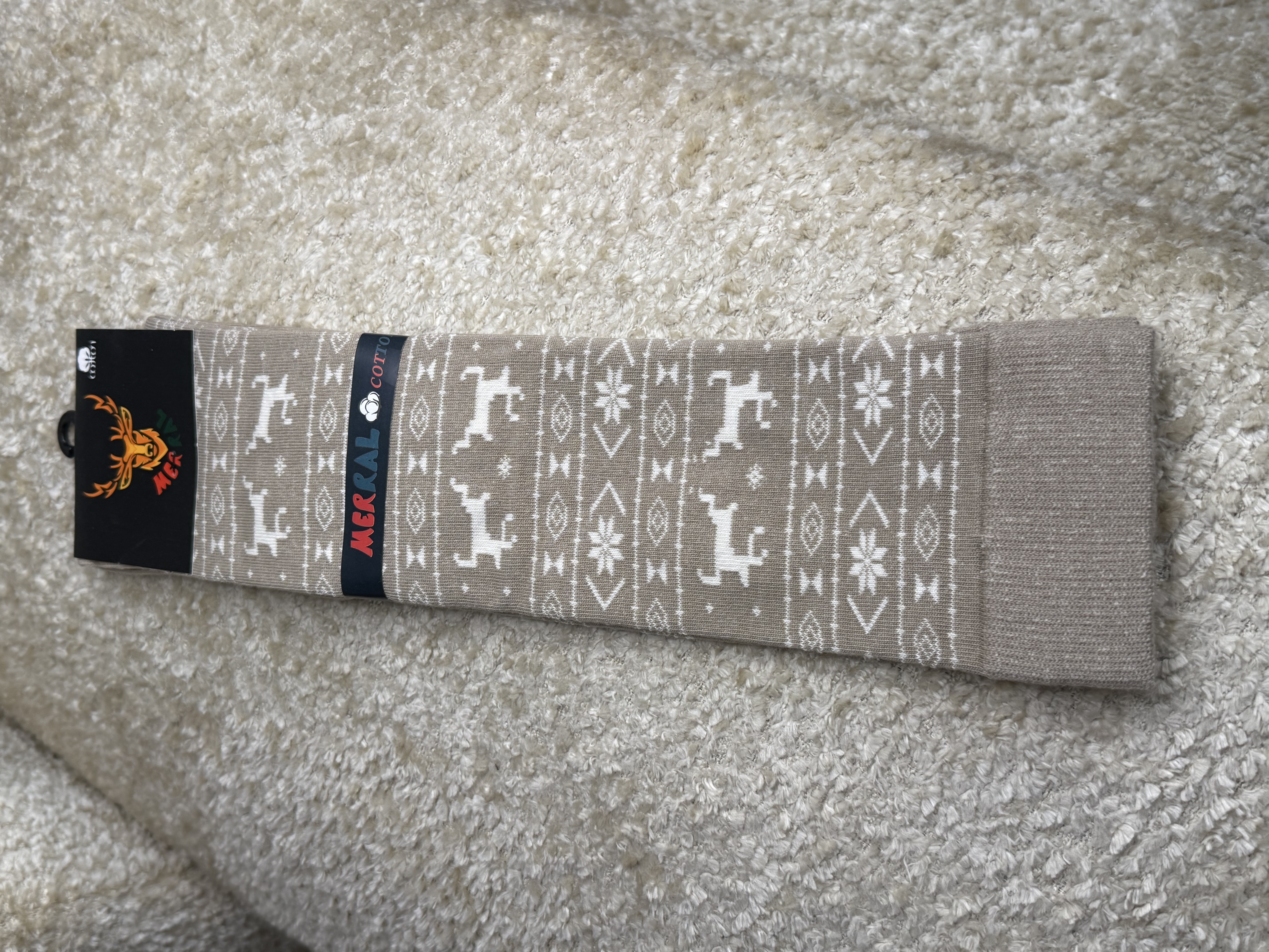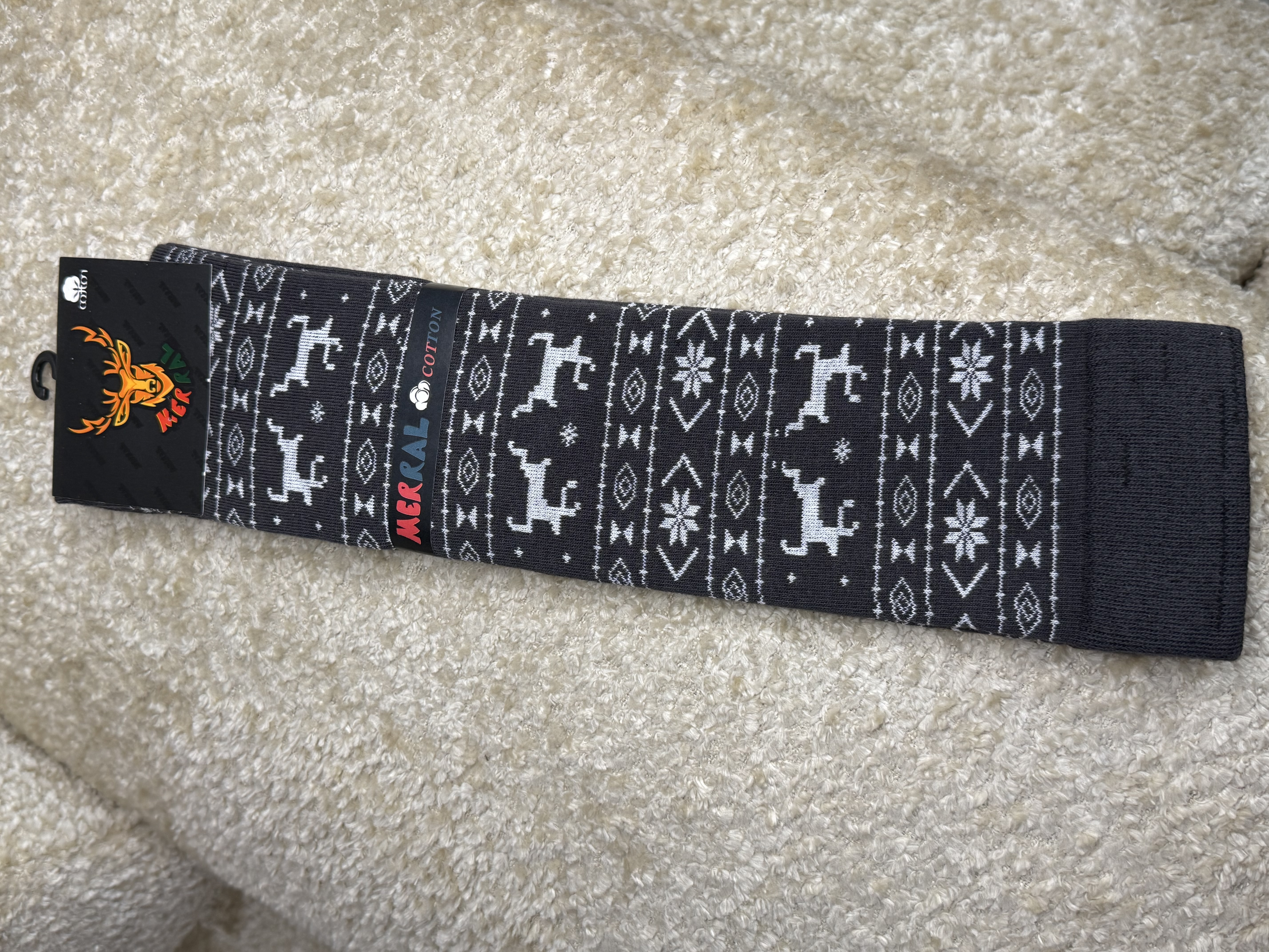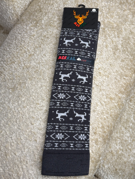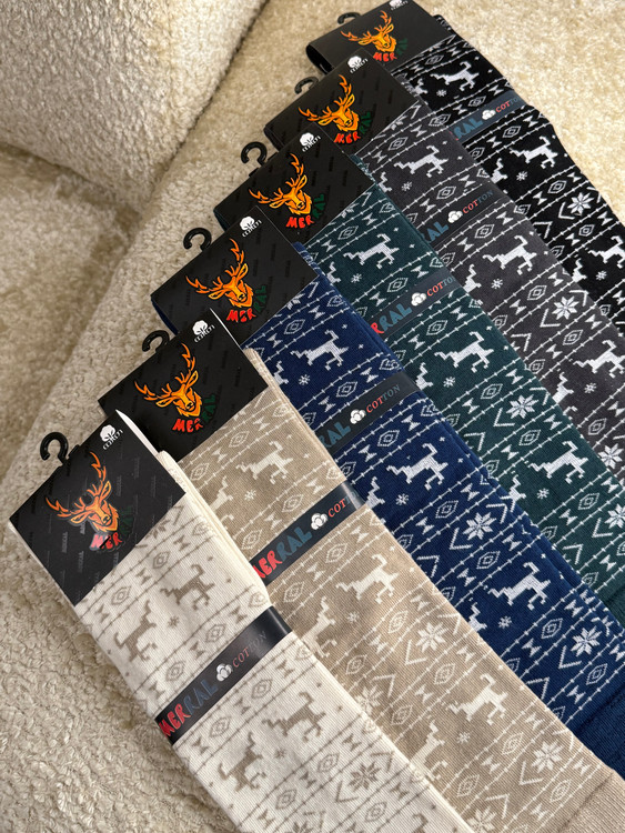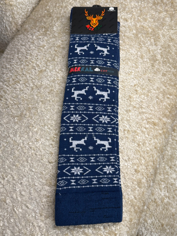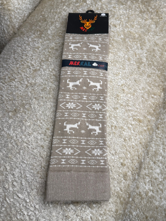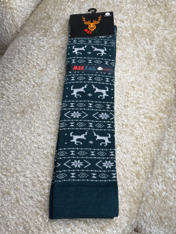 جوراب زنانه زیر زانو طرح زمستونی گوزن و دونه برف مرال