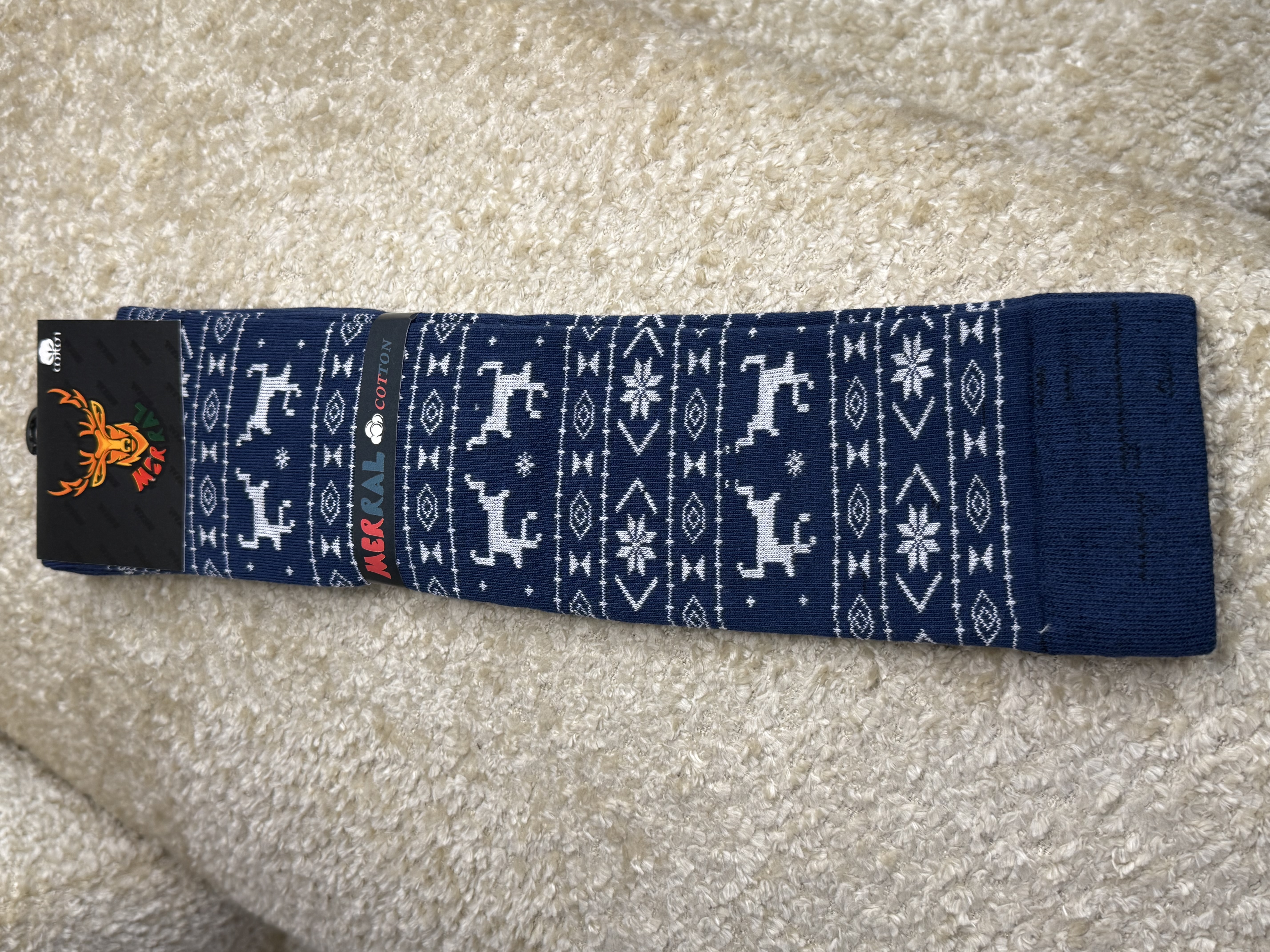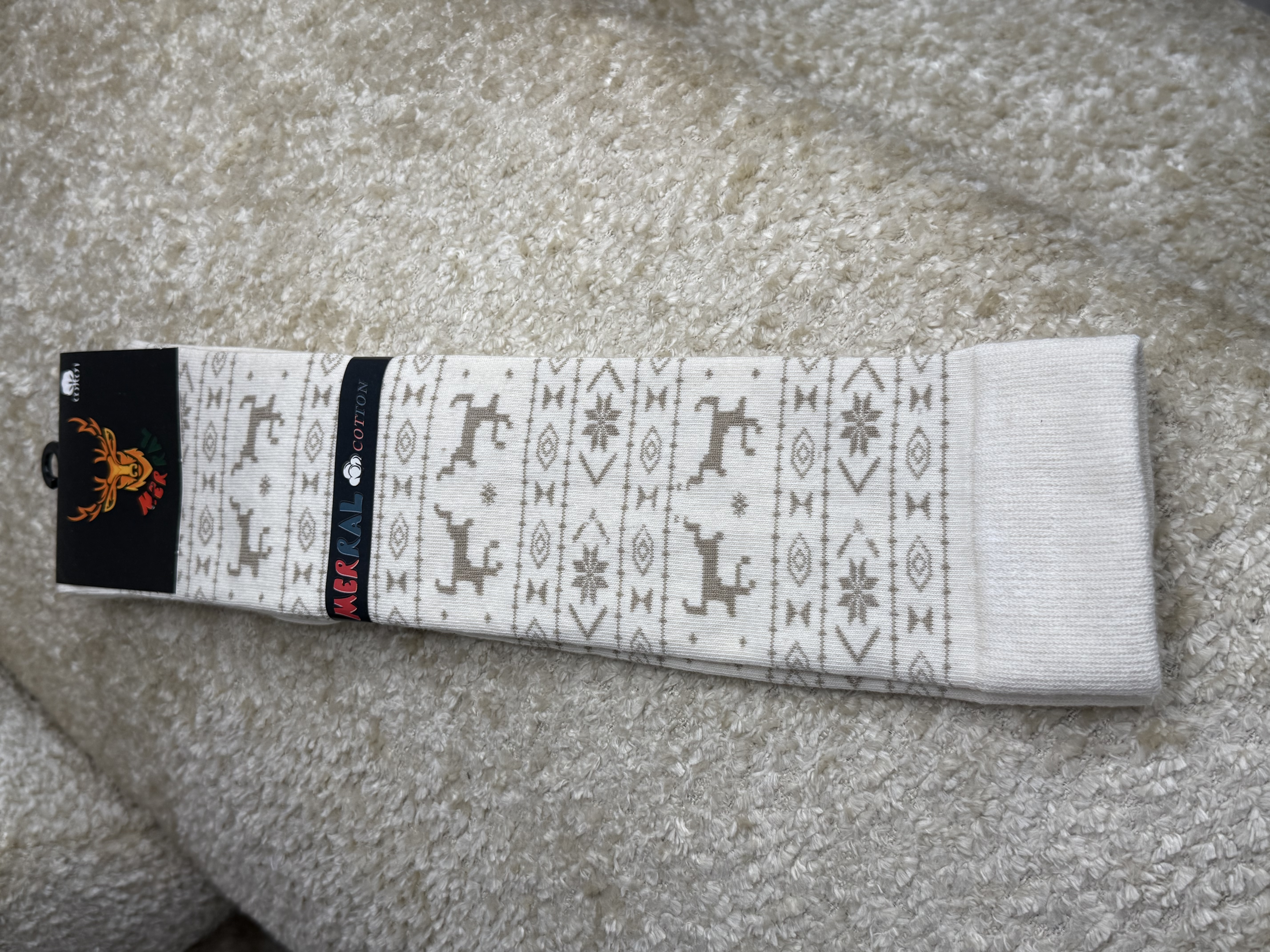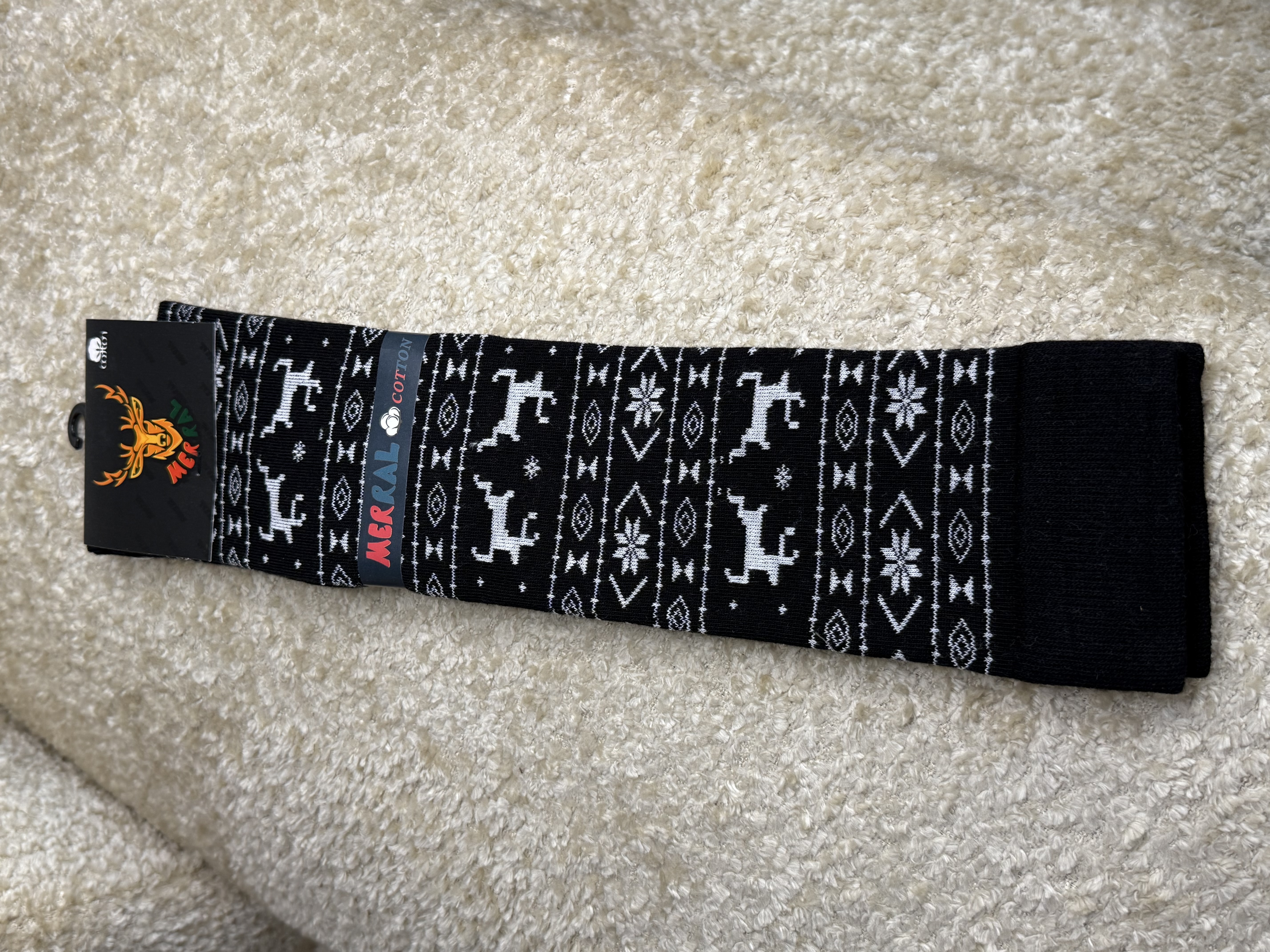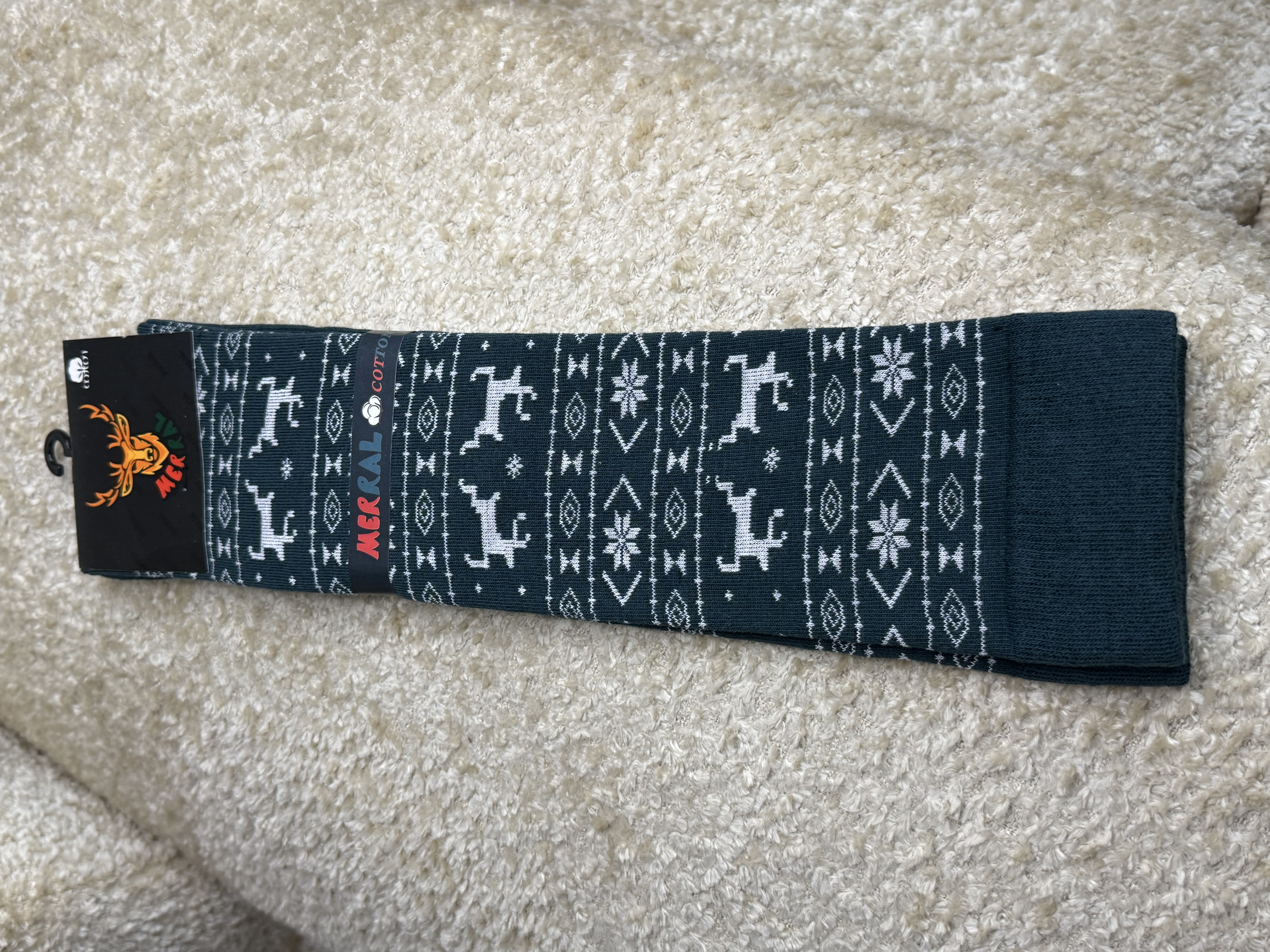 جوراب زنانه زیر زانو طرح زمستونی گوزن و دونه برف مرال