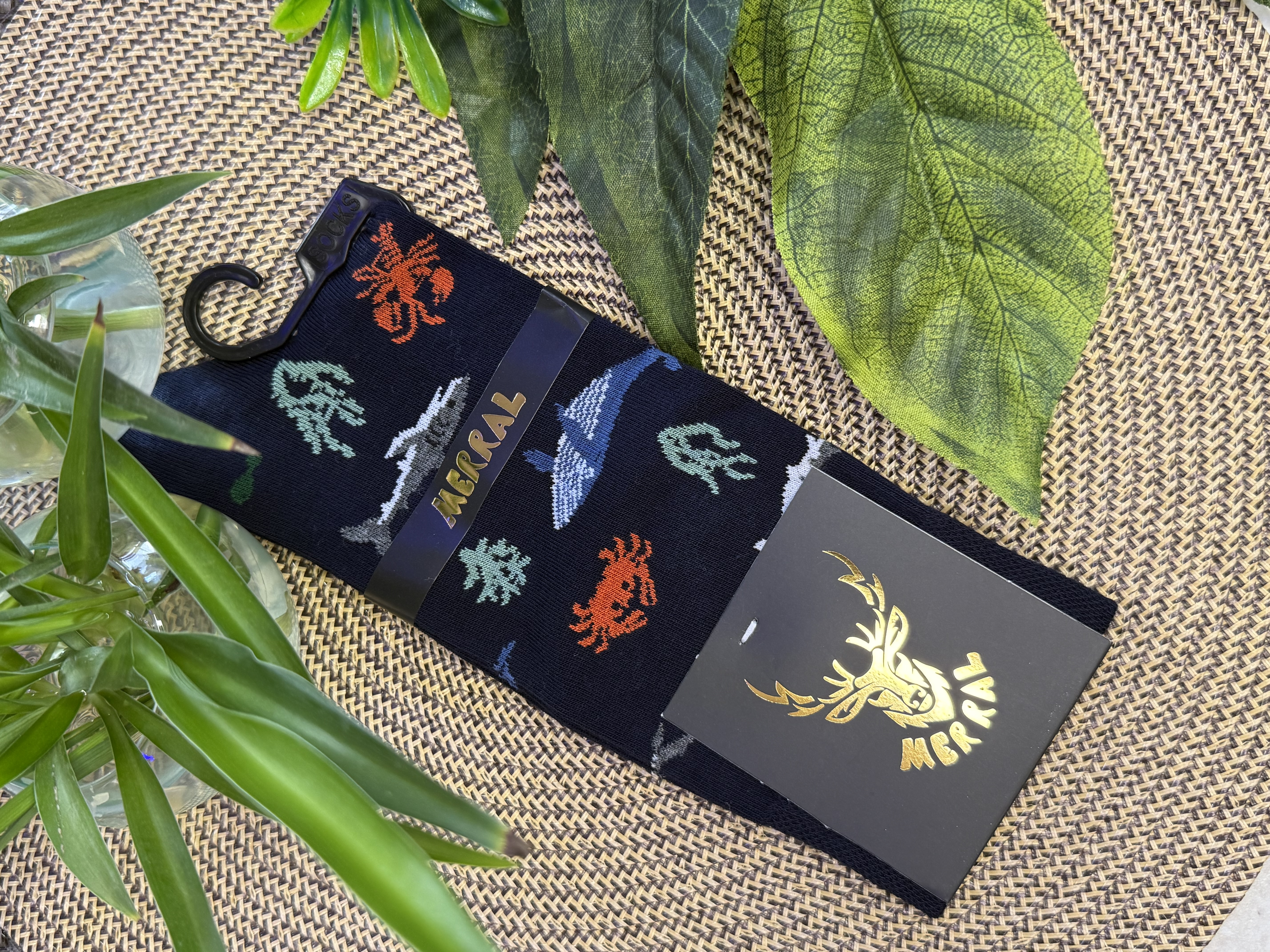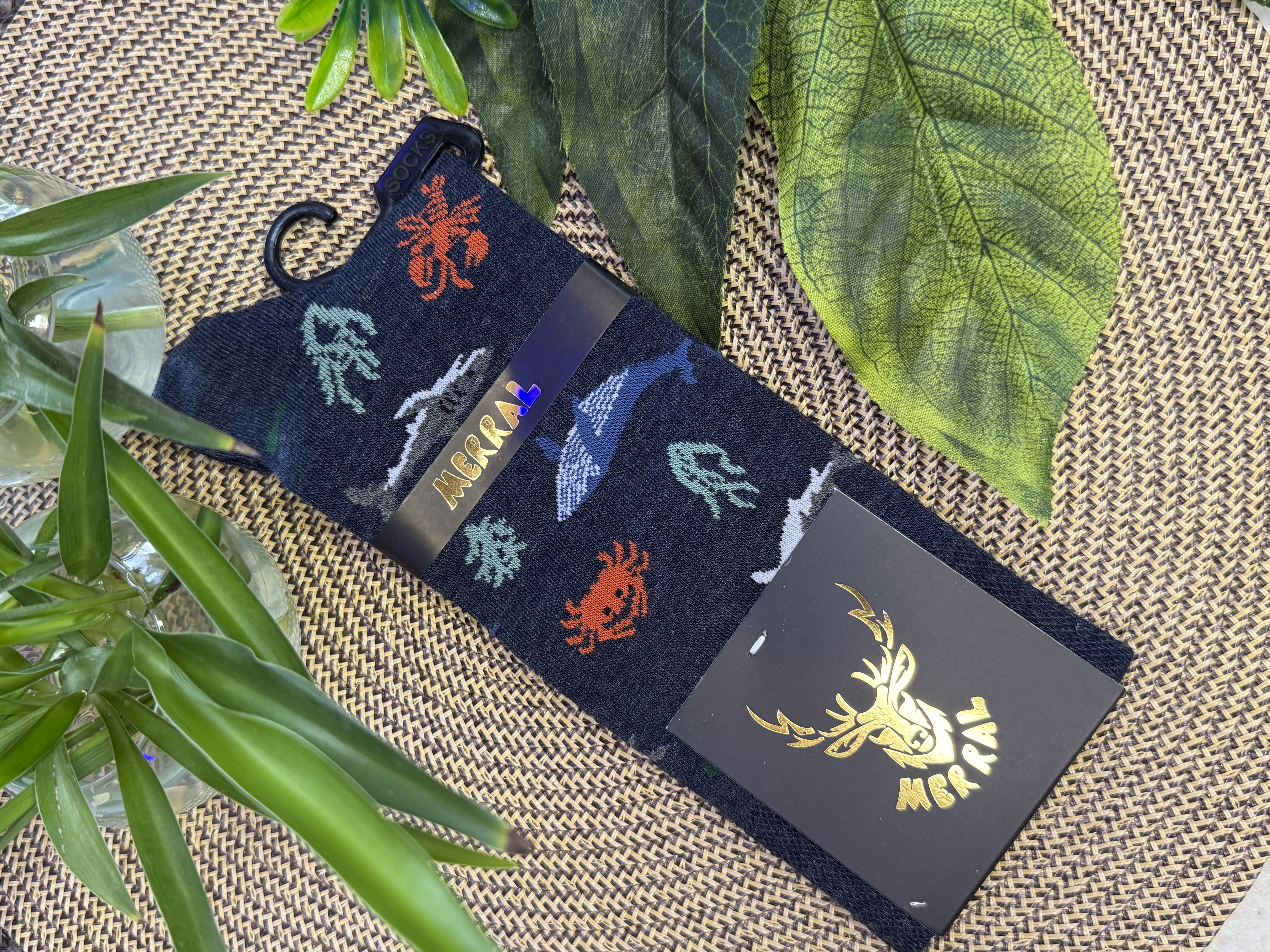 جوراب مردانه ساقدار طرح نهنگ و خرچنگ هپی مرال عمده