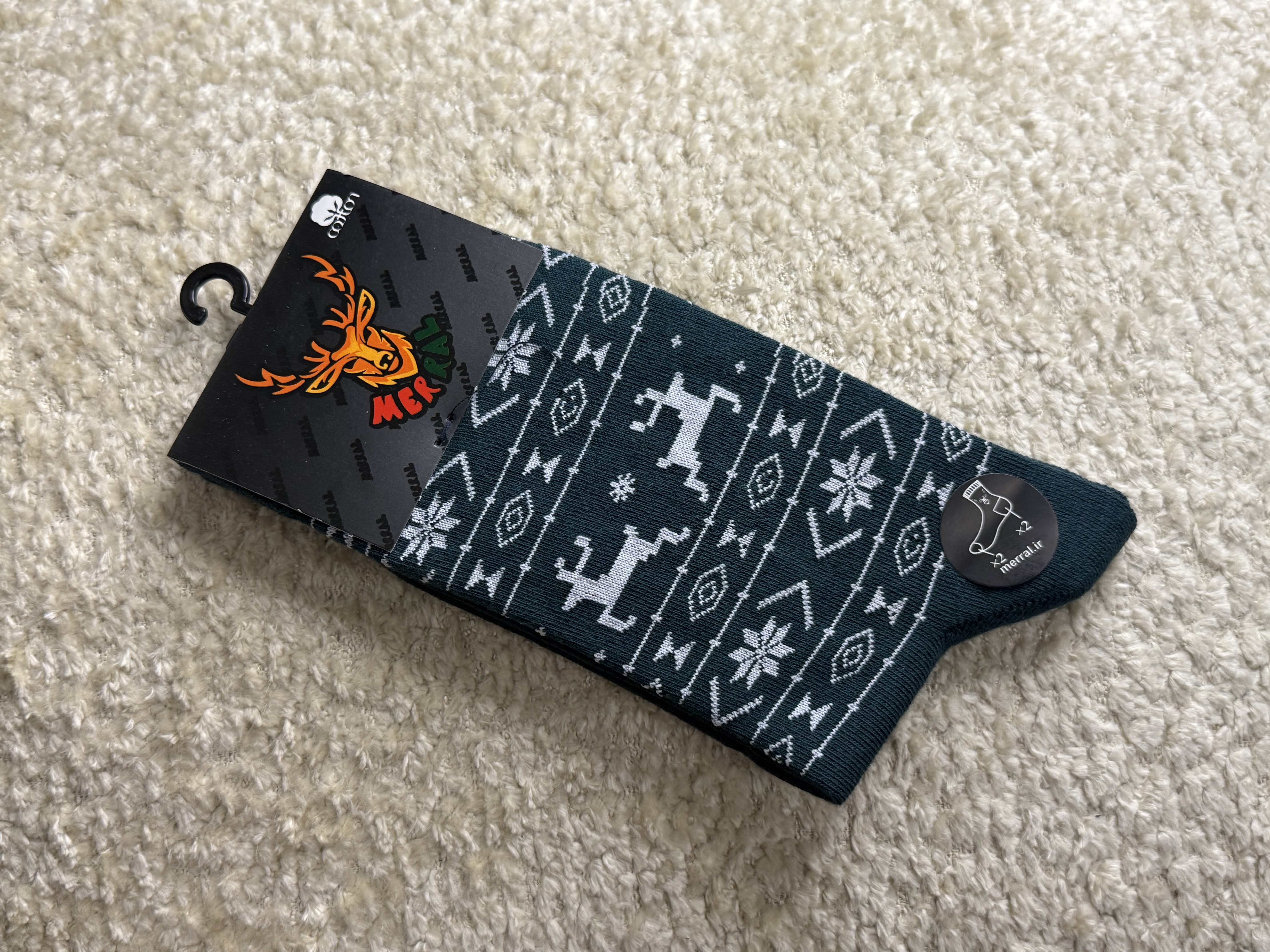 جوراب زنانه ساقدار طرح گوزن نخ پنبه مرال