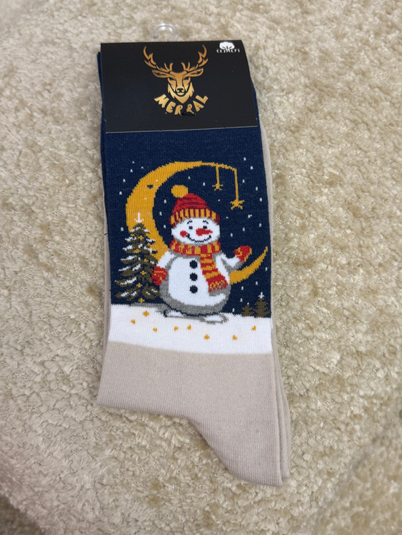 جوراب مردانه ساقدار طرح آدم برفی و ماه مرال عمده